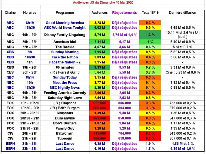 Et enfin le programme Last Dance sur ESPN est toujours ultrapuissant à plus de 4 M et à pratiquement 2 % sur le taux.