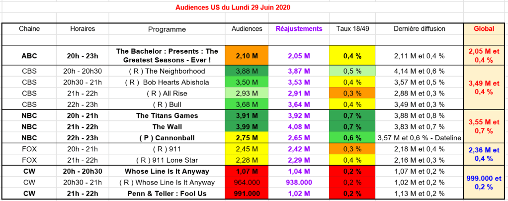 Enfin, CW est bon le lundi avec Whose Line Is It Anyway à 1,04 M ; la relance derrière à 938.000 et l’inédit de Penn & Teller à 1,02 M.