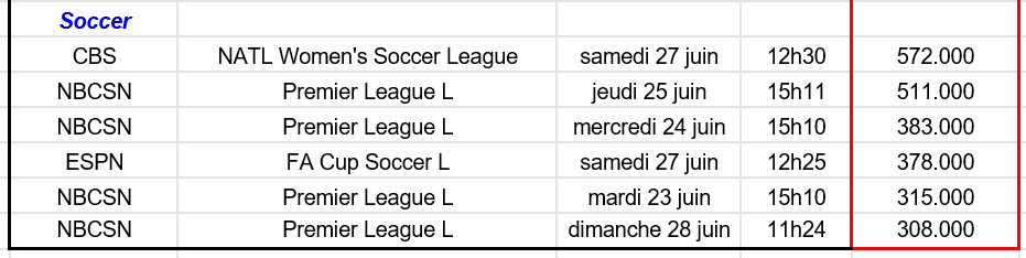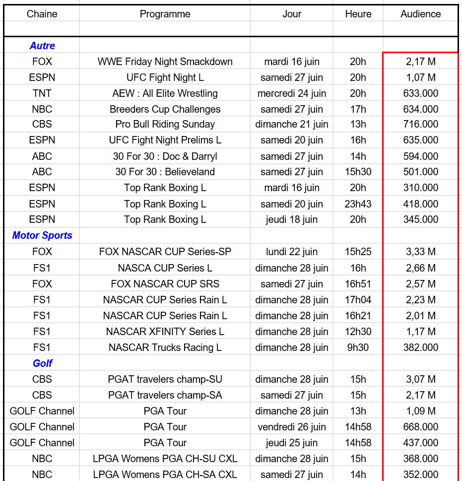 Audiences US « Sport » du Lundi 22 Juin au Dimanche 28 Juin. Thomas Fusil Communiqués Audiences US 30 juin 202020 avril 2021 1 Minute Retrouvez les audiences US Sport de la semaine tous les Mardis sur le site Partager : Partager sur X(ouvre dans une nouvelle fenêtre) X Partager sur Facebook(ouvre dans une nouvelle fenêtre) Facebook J’aime chargement… Similaire Publié par Thomas Fusil Voir tous les articles par Thomas Fusil Publié 30 juin 202020 avril 2021