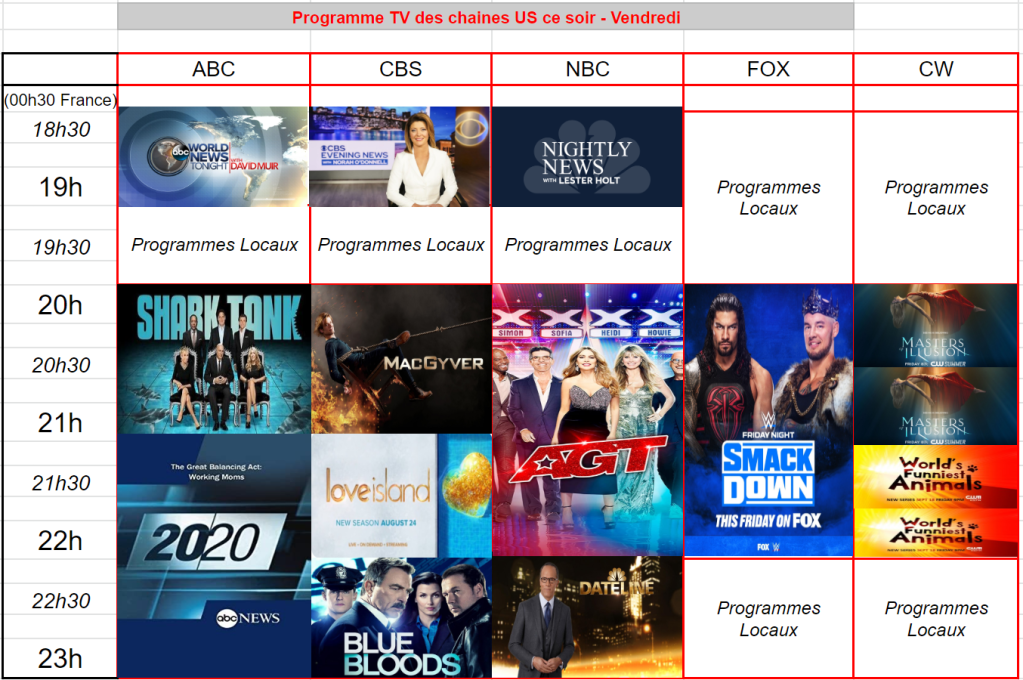 Les relances de MacGyver à 2,71 M / 0,3 % et Blue Bloods à 2,61 M / 0,3 % sont à de bons niveaux – Love Island est à 1,58 M et 0,3 % : en baisse sur une semaine.