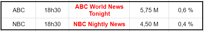 60 Minutes explose tout hier à 10,76 M et 1,6 % sur CBS !