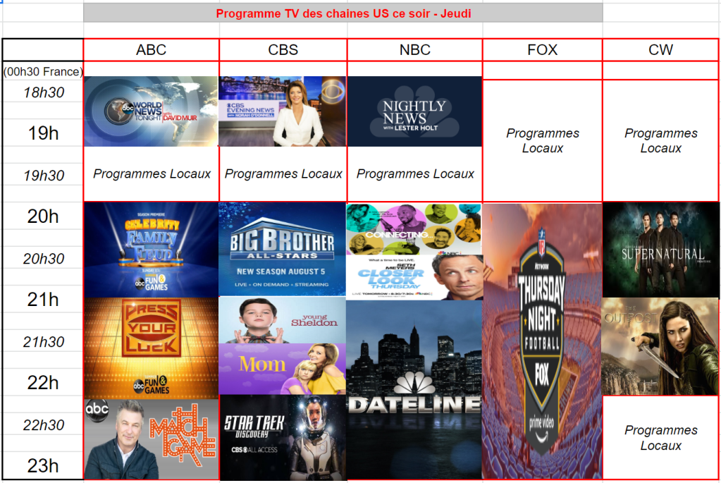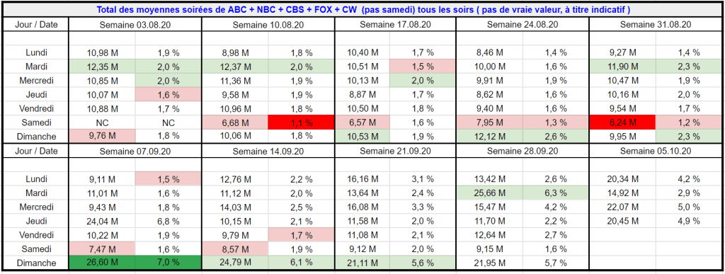Tableaux du total des 5 chaines chaque jour / Vous remarquez la différence entre ls semaine d’aout et les semaines actuelles ??