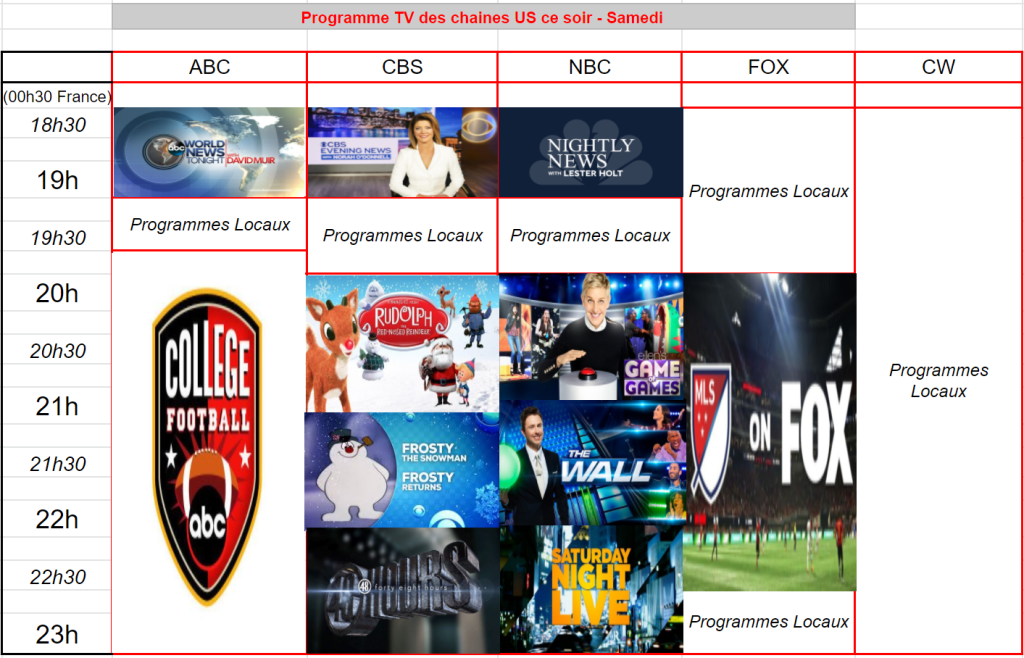 Enfin, FOX, pas en forme le samedi, c’est pas le point fort de la semaine, attire seulement 747.000 et 0,3 % (mieux) avec MLS.