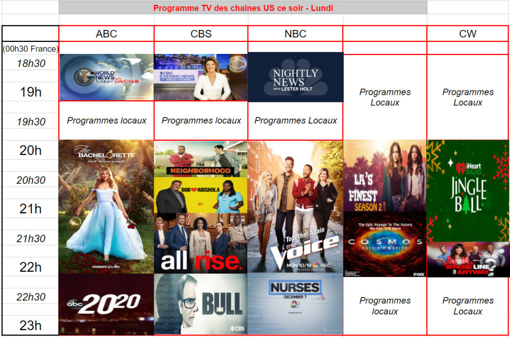 FOX est très faible, à peine au dessus du million pour sa soirée. CW sous les 500.000