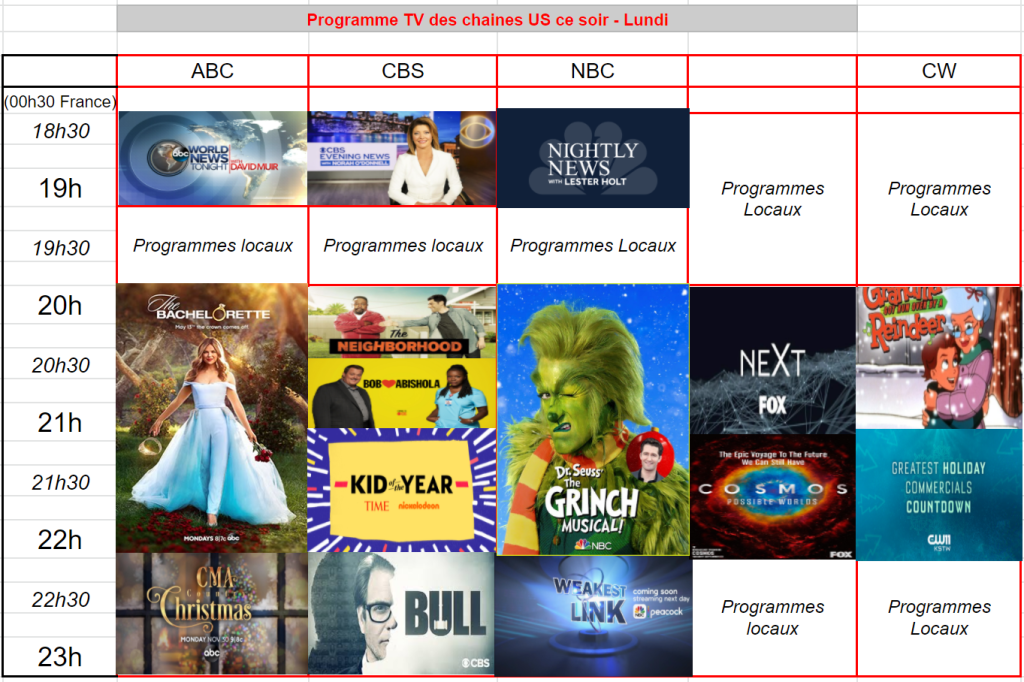 Soirée catastrophique pour NBC avec seulement 1,44 M et 0,3 % pour la relance de The Grinch Musical et 1,32 M et à,3 % pour la relance de Weakest Link. C’est un flop la soirée !