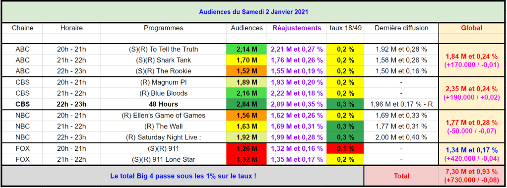 48 Hours attire 2,89 M et 0,35 % ; c’est le plus grand public de la soirée.
