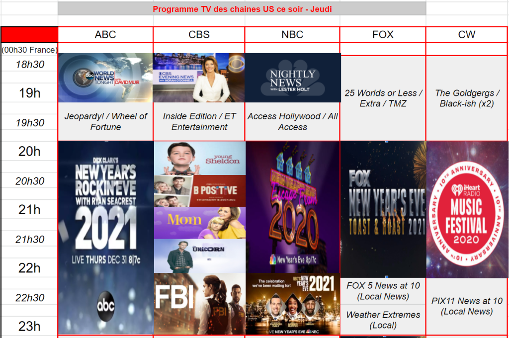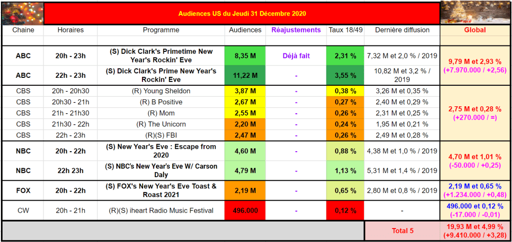 En ce 31 décembre, ABC, NBC et FOX avaient des soirées spéciales pour le passage à 2021. Et une chaine à tout explosé !!