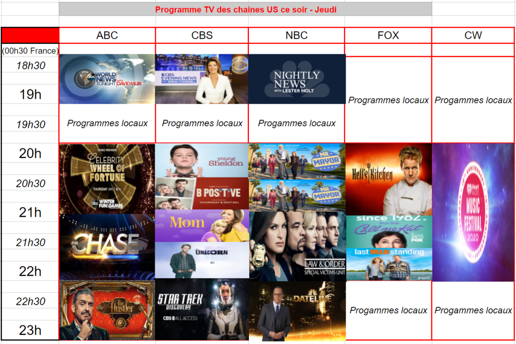 Un jeudi assez chargé pour ABC, NBC et FOX.