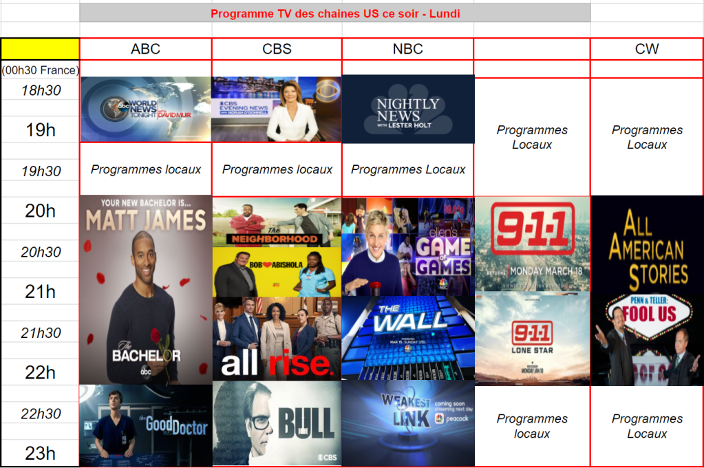 Sur FOX, les relances de 911 et 911 Lone Star sont solides avec 2,31 M et 2,18 M et à 0,41 M (et non 0,36 % comme dans le tableau !).