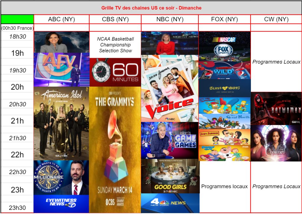 Les Grammy sont – sans surprise – en très forte baisse avec 9,23 M et 2,28 % contre 18,69 M et 5,40 % en 2020. La cérémonie reste tout de même un programme puissant, notamment sur taux !