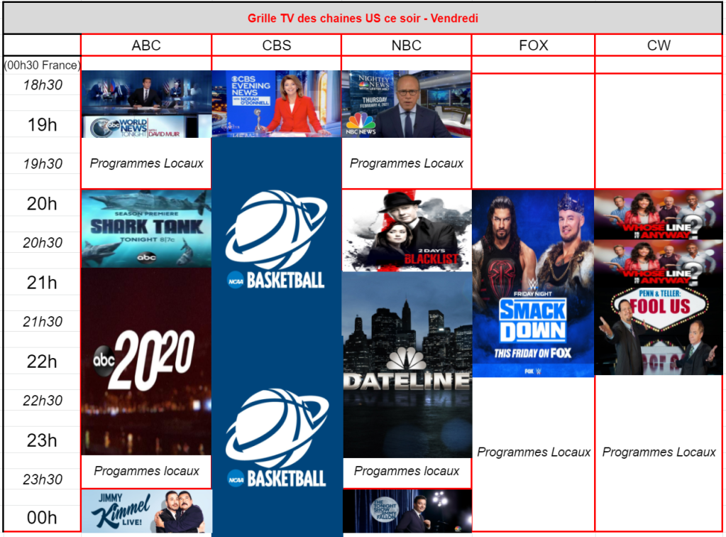 La soirée de CBS est correct avec 745.000 / 637.000 / 796.000 – Bon niveau.