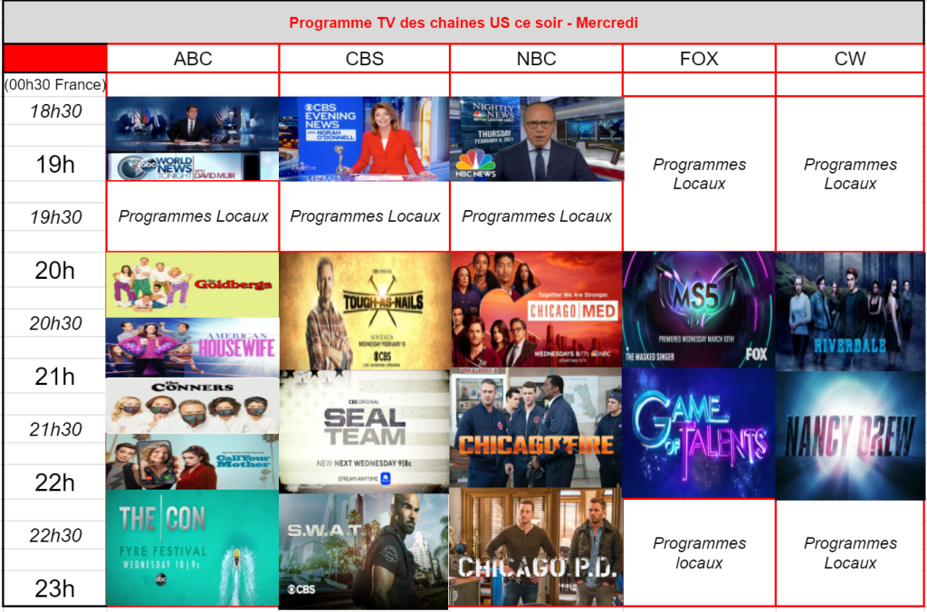 La soirée n’est pas non plus brillante pour CBS, mais contrairement à ABC, avec des rediffusions