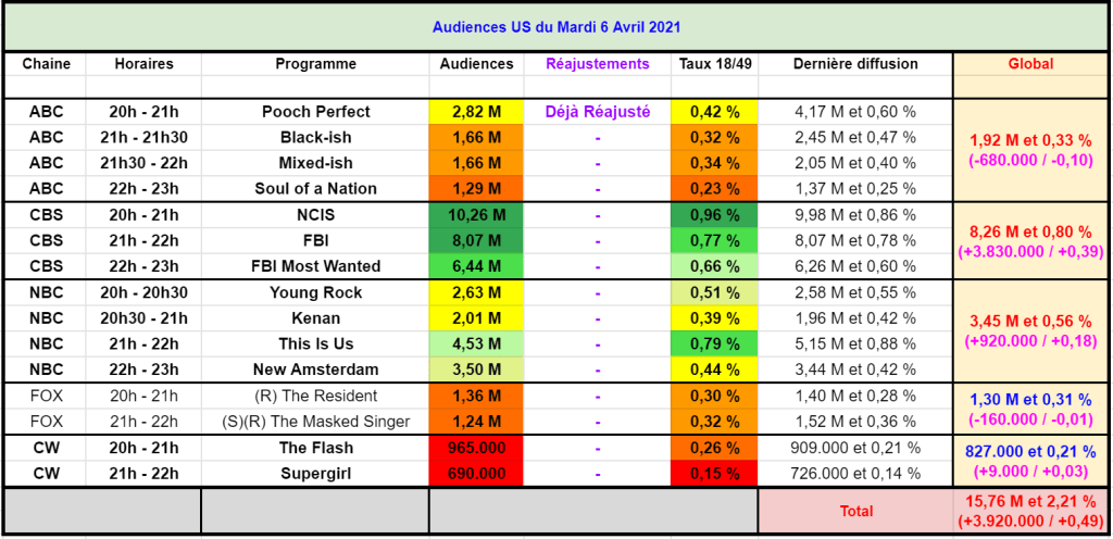 NCIS est très puissant avec 10,26 M et 0,96 % – 2e meilleure audience de la saison ! Rappel, très important, on parle ici de la saison 18 de la série ! (+7,44 M sur ABC / +7,94 M sur NBC)