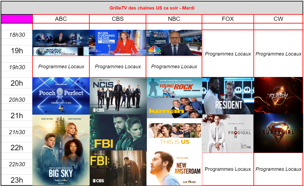 Voici la grille de ce mardi