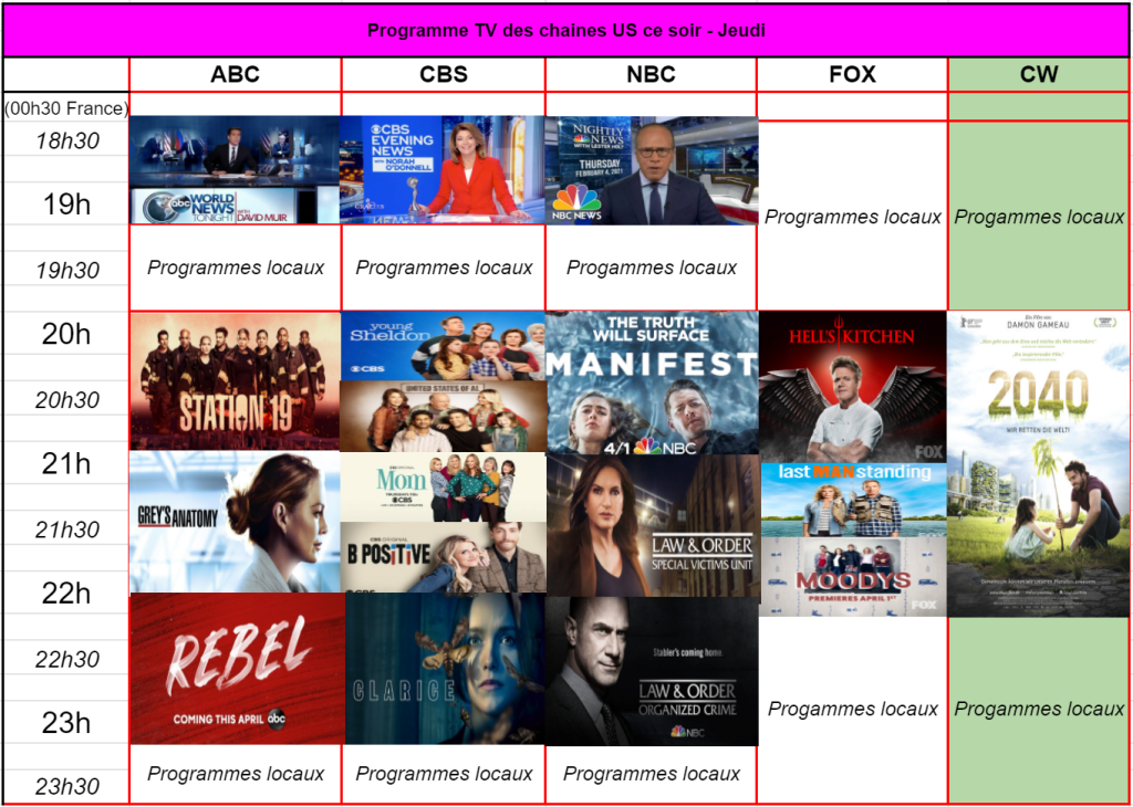 Young Sheldon avec 7,01 M et 0,66 % – United States of Al avec 5,37 M et 0,59 % – Mom avec 5,04 M et 0,61% sont tous en baisse mais à de bons niveaux. La première sitcom signant la meilleure audience de la soirée.