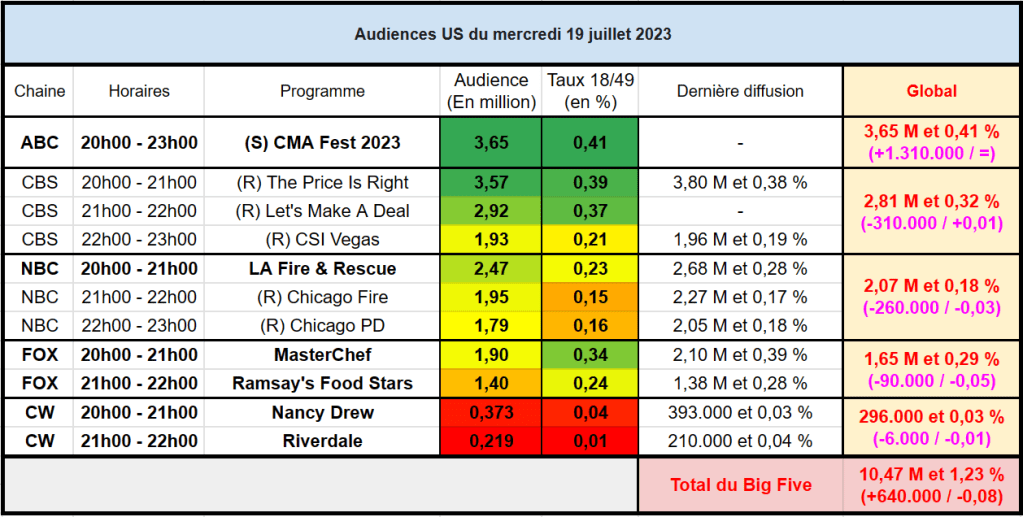 Sur ABC, CMA Fest 2023 attire le plus large public de la soirée avec 3,65 M et 0,41 % – C’est un bon score en cet été.