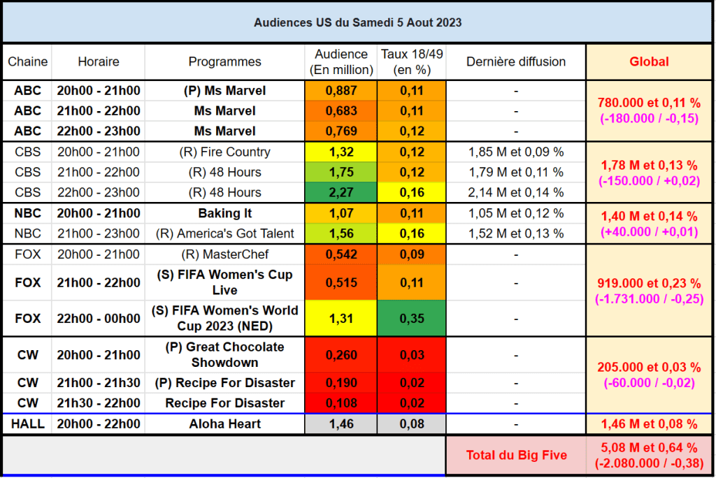 CW est très faible avec son nouveau lineup du samedi. Great Chocolate Showndown rassemble 260.000 et 0,03 %