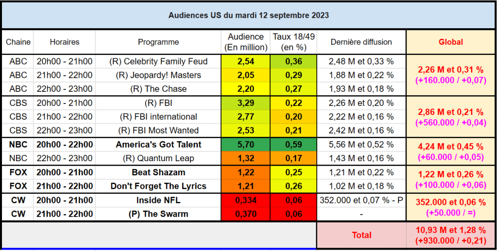 Audiences US du Mardi 12.09.23 : AGT très large leader. Tous les networks sont en hausse. Thomas Fusil Communiqués Audiences US 14 septembre 202314 septembre 2023 1 Minute Voici les audiences de la soirée du 12 Septembre Partager : Partager sur X(ouvre dans une nouvelle fenêtre) X Partager sur Facebook(ouvre dans une nouvelle fenêtre) Facebook J’aime chargement… Similaire Publié par Thomas Fusil Voir tous les articles par Thomas Fusil Publié 14 septembre 202314 septembre 2023