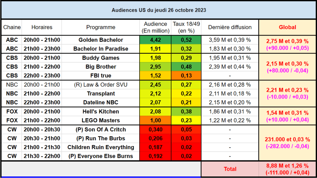 A noter que sur 20h/23h, FOX News avec 2,62 M est devant CBS et NBC et talonne ABC.