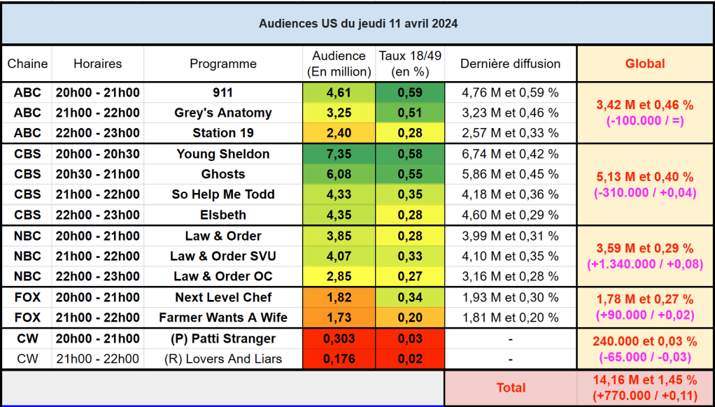 Audiences US du Jeudi 11.04.24 : Carton pour Young Sheldon et Ghosts sur CBS. 911 leader sur cible. Elsbeth en baisse. CW faible. Thomas Fusil Communiqués Audiences US 13 avril 202413 avril 2024 1 Minute Voici les audiences de la soirée du 11 Avril Partager : Partager sur X(ouvre dans une nouvelle fenêtre) X Partager sur Facebook(ouvre dans une nouvelle fenêtre) Facebook J’aime chargement… Similaire Publié par Thomas Fusil Voir tous les articles par Thomas Fusil Publié 13 avril 202413 avril 2024