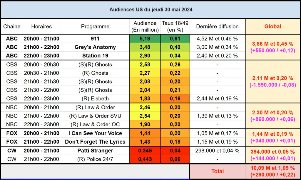 Audiences triées (téléspectateurs) de la soirée du 30 Mai