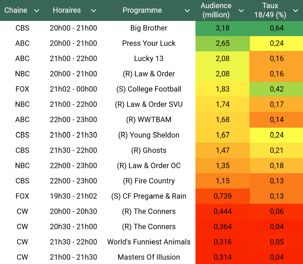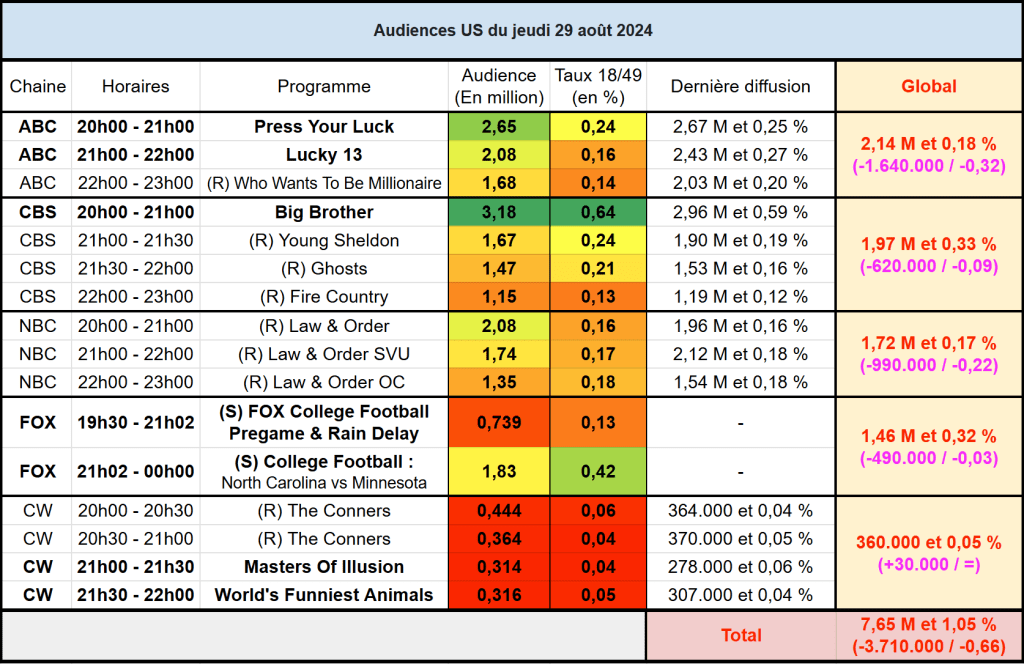 Voici les audiences de la soirée du 29 Aout