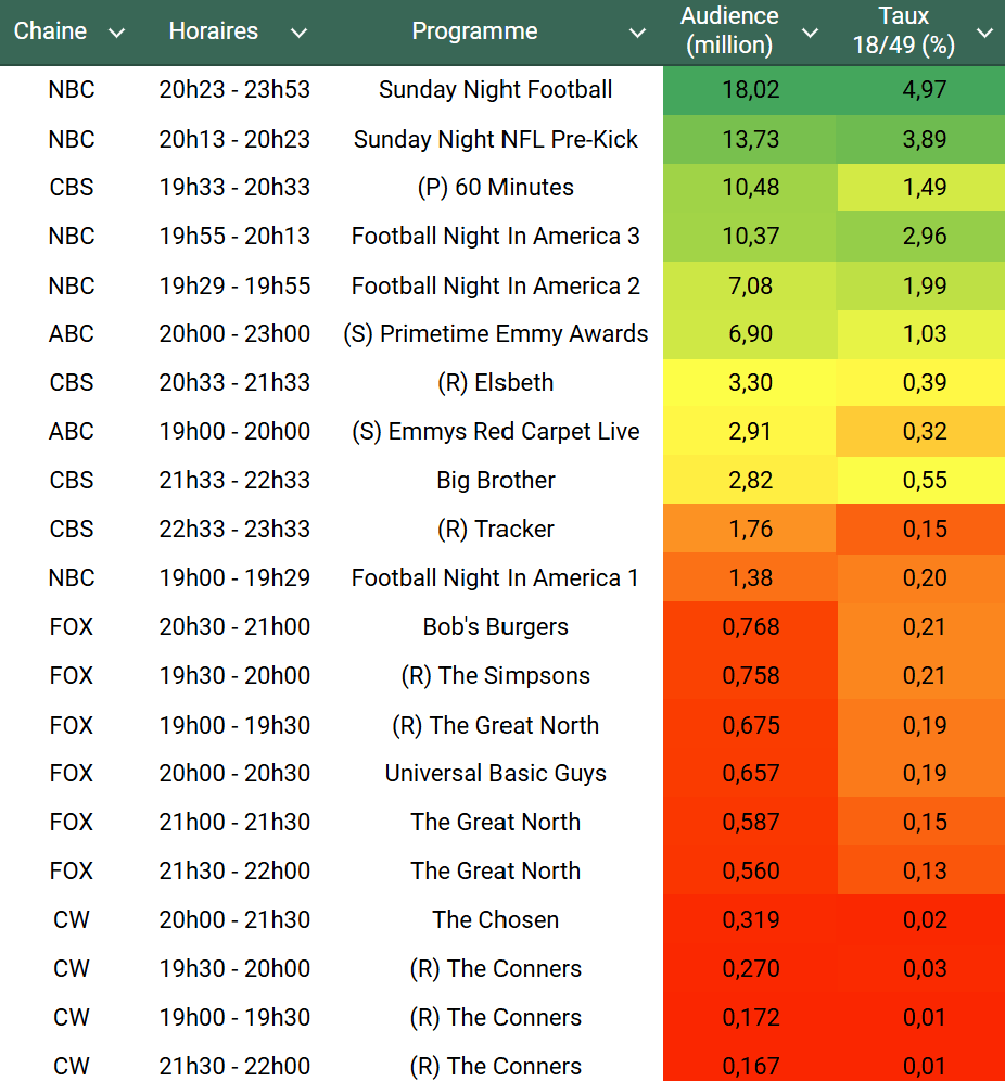 Voici les audiences de la soirée du 15 Septembre
