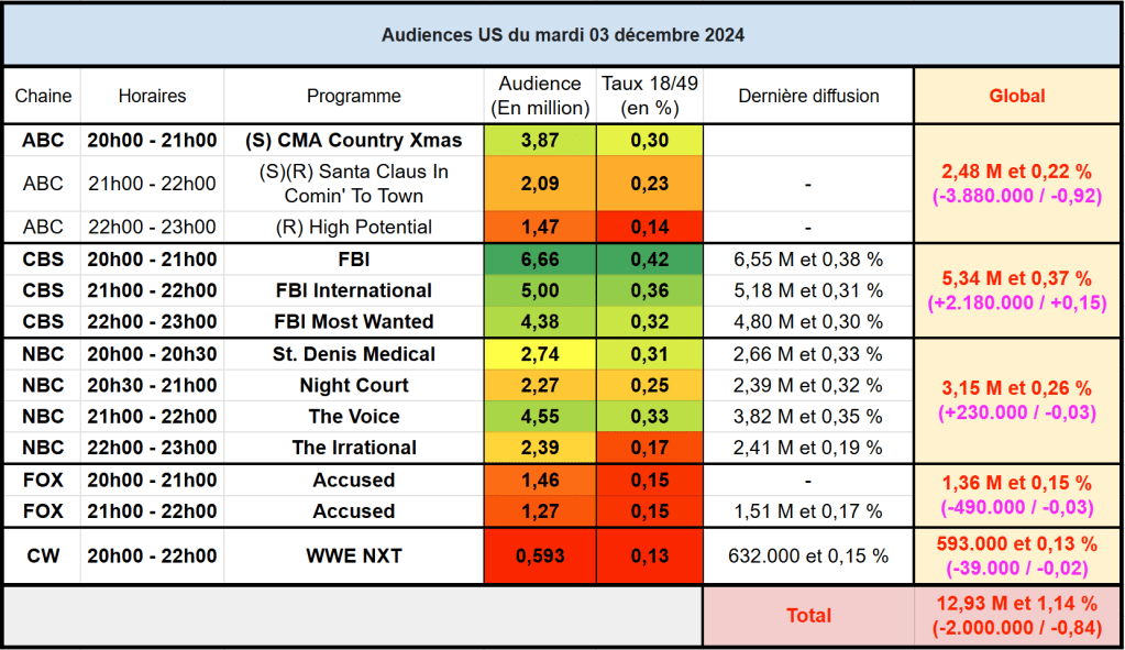 Voici les audiences de la soirée du 3 Décembre