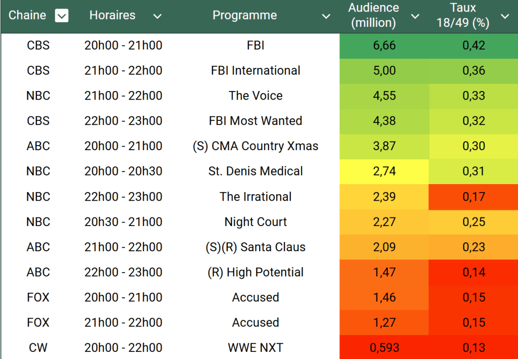 Voici les audiences triées (téléspectateurs)