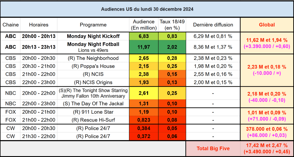 Voici les audiences de la soirée du 30 Décembre
