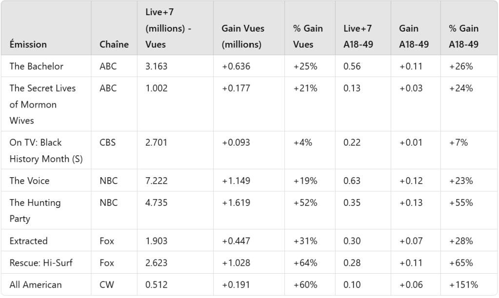 Audiences Live+7 et gains associés