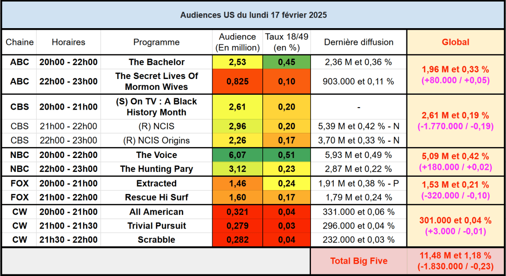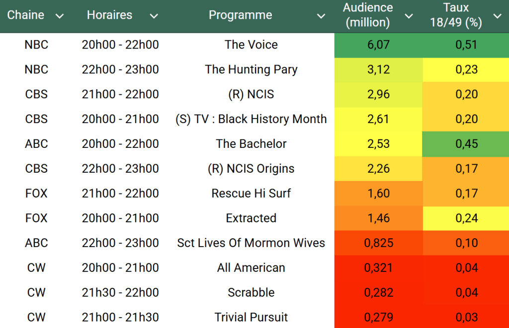 Voici les audiences de la soirée du 17 Février