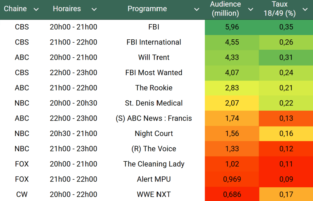 Audiences US du Mardi 22.04.25 : FBI très large leader en hausse sur CBS. The Rookie en baisse. Les séries de FOX sont toujours très faibles. Thomas Fusil Communiqués Audiences US 27 avril 2025 1 Minute Voici les audiences de la soirée du 22 Avril Audiences triées (téléspectateurs) Partager : Partager sur X(ouvre dans une nouvelle fenêtre) X Partager sur Facebook(ouvre dans une nouvelle fenêtre) Facebook J’aime chargement… Similaire Publié par Thomas Fusil Voir tous les articles par Thomas Fusil Publié 27 avril 2025