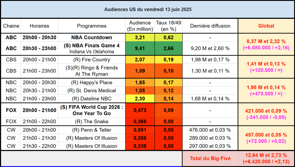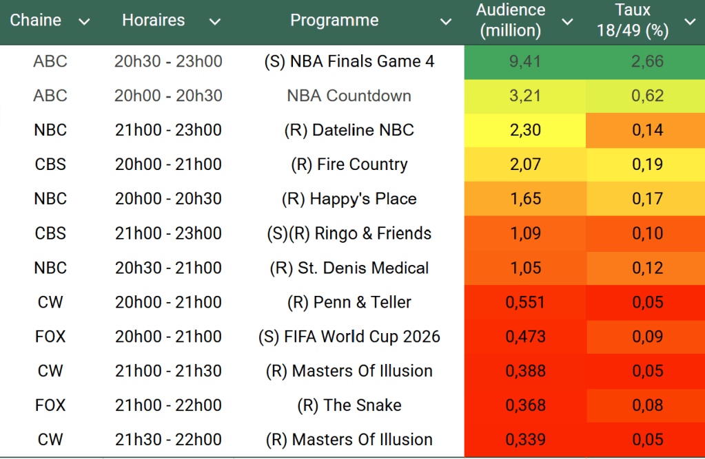 Voici les audiences de la soirée du 13 Juin