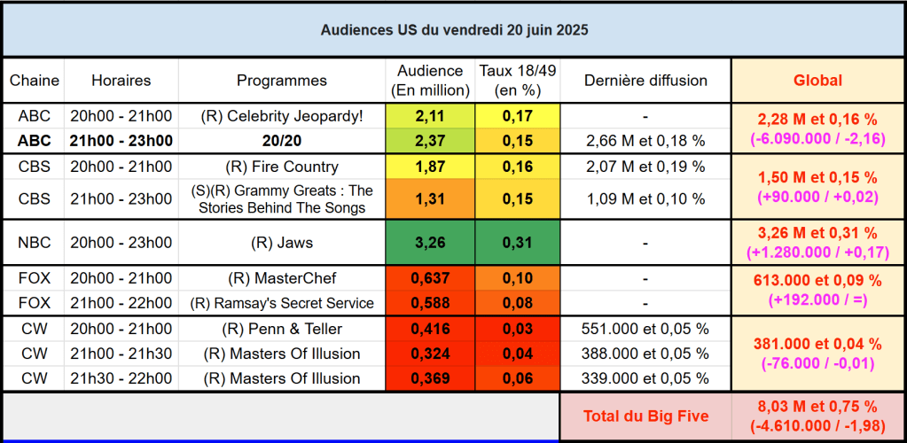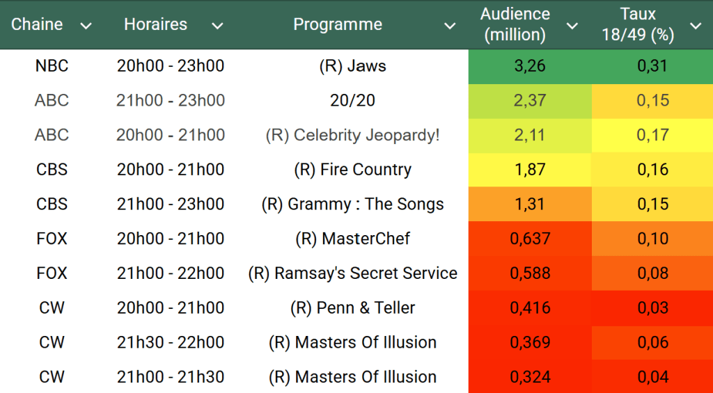 Voici les audiences de la soirée du 20 Juin