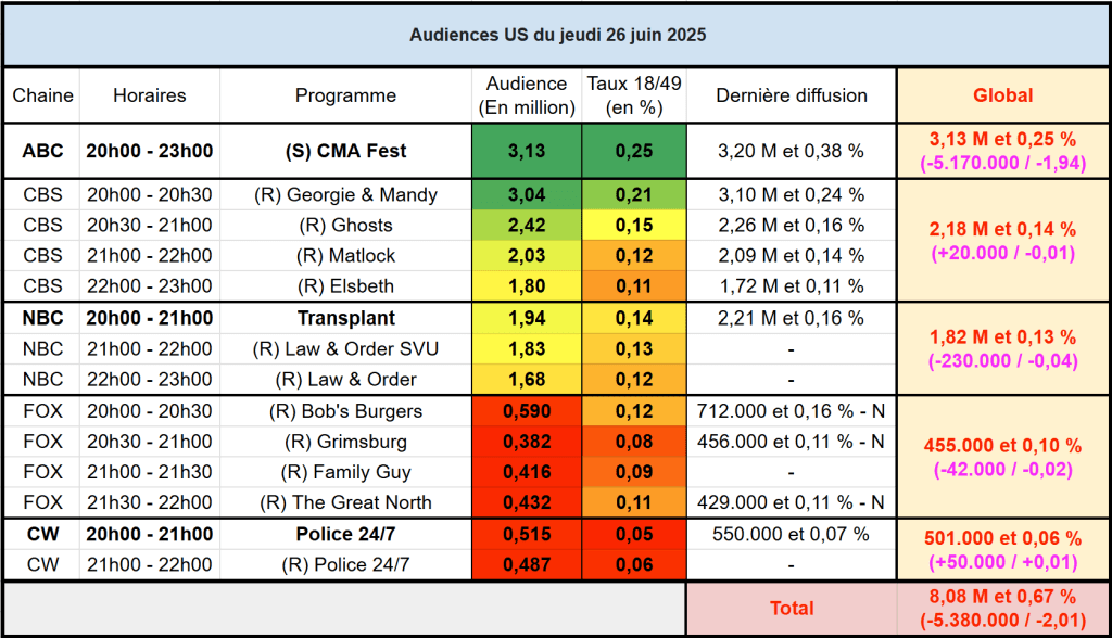 Voici les audiences de la soirée du 26 Juin