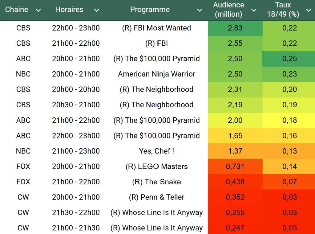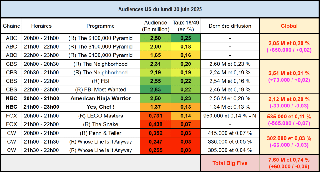 Voici les audiences de la soirée du 30 Juin