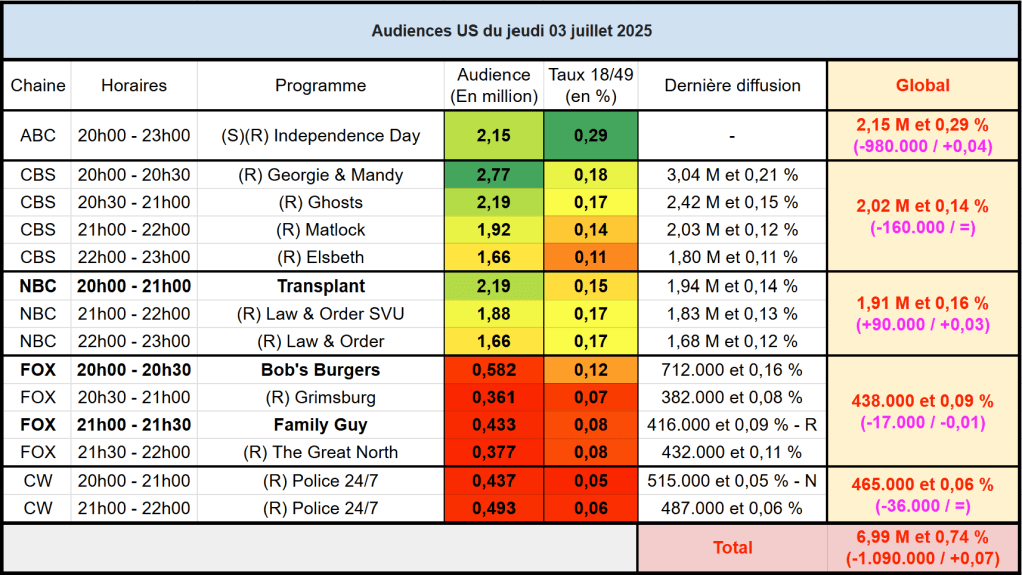 Audiences chaines infos : FOX News toujours puissant leader au dessus des 3 millions. MSNBC chute nettement sous le million, toutes ses émissions sont sous les 900k. CNN chute elle sous les 500k.