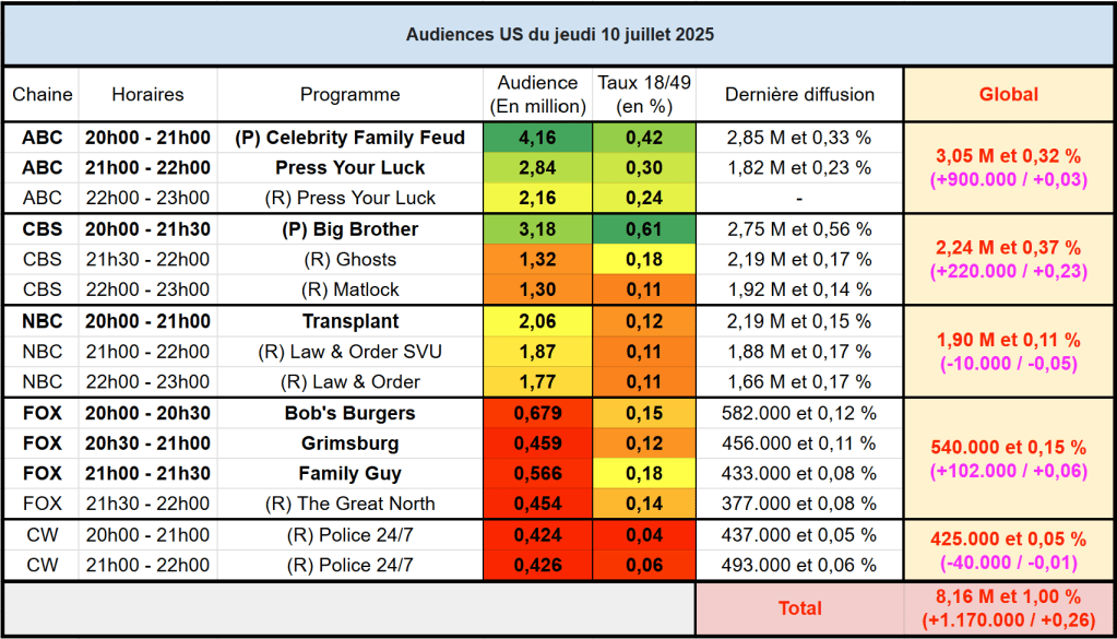 Voici les audiences de la soirée du 10 Juillet