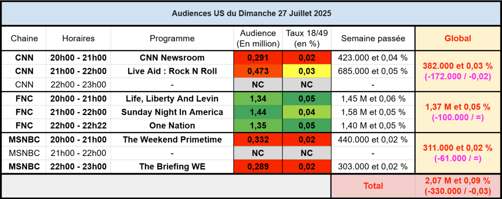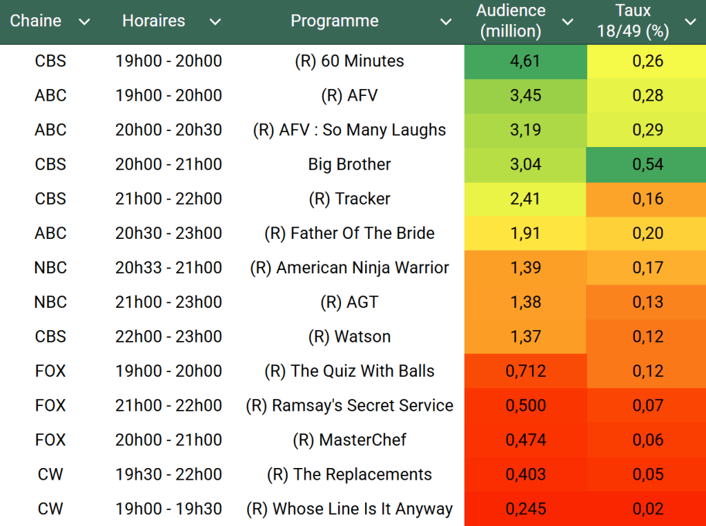 Voici les audiences du 27 Juillet