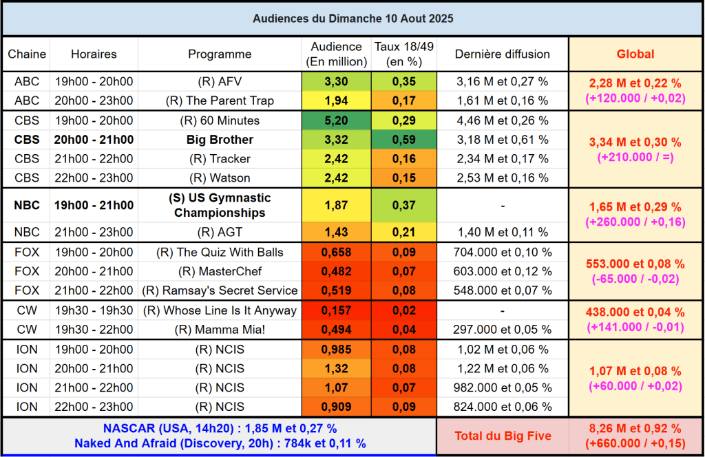 Voici les audiences de la soirée du 10 Aout
