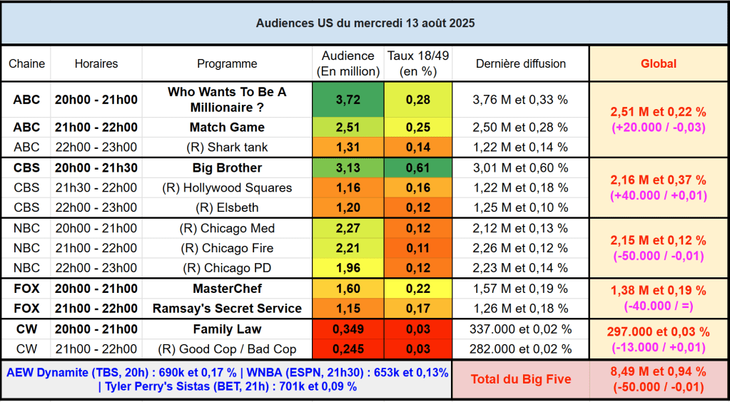 Voici les audiences de la soirée du 13 Aout