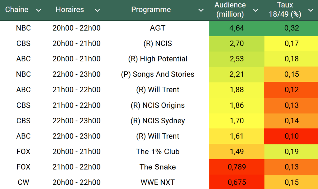 Audiences triées téléspectateurs