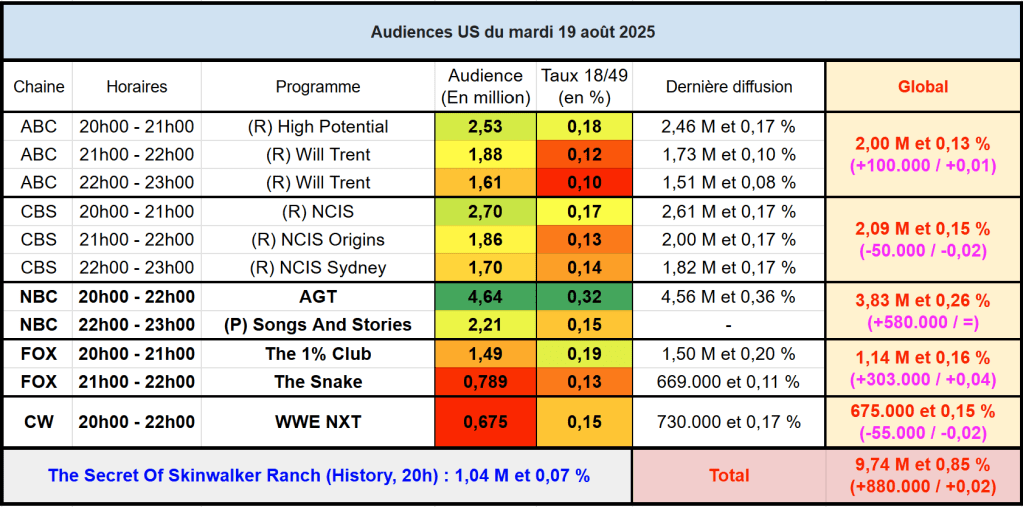 Voici les audiences de la soirée du 19 Aout