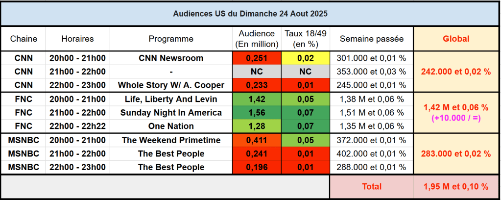 Audiences des chaines infos : FOX News large leader et en bonne forme.