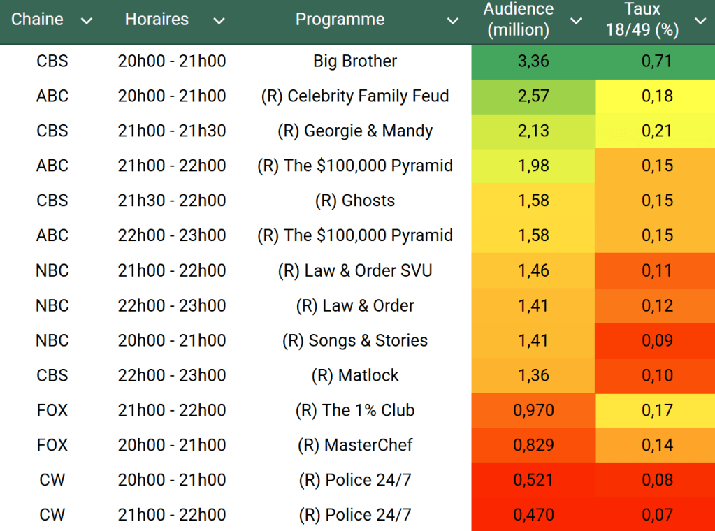 Voici les audiences de la soirée du 28 Aout