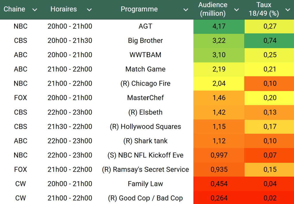 Voici les audiences de la soirée du 9 Septembre