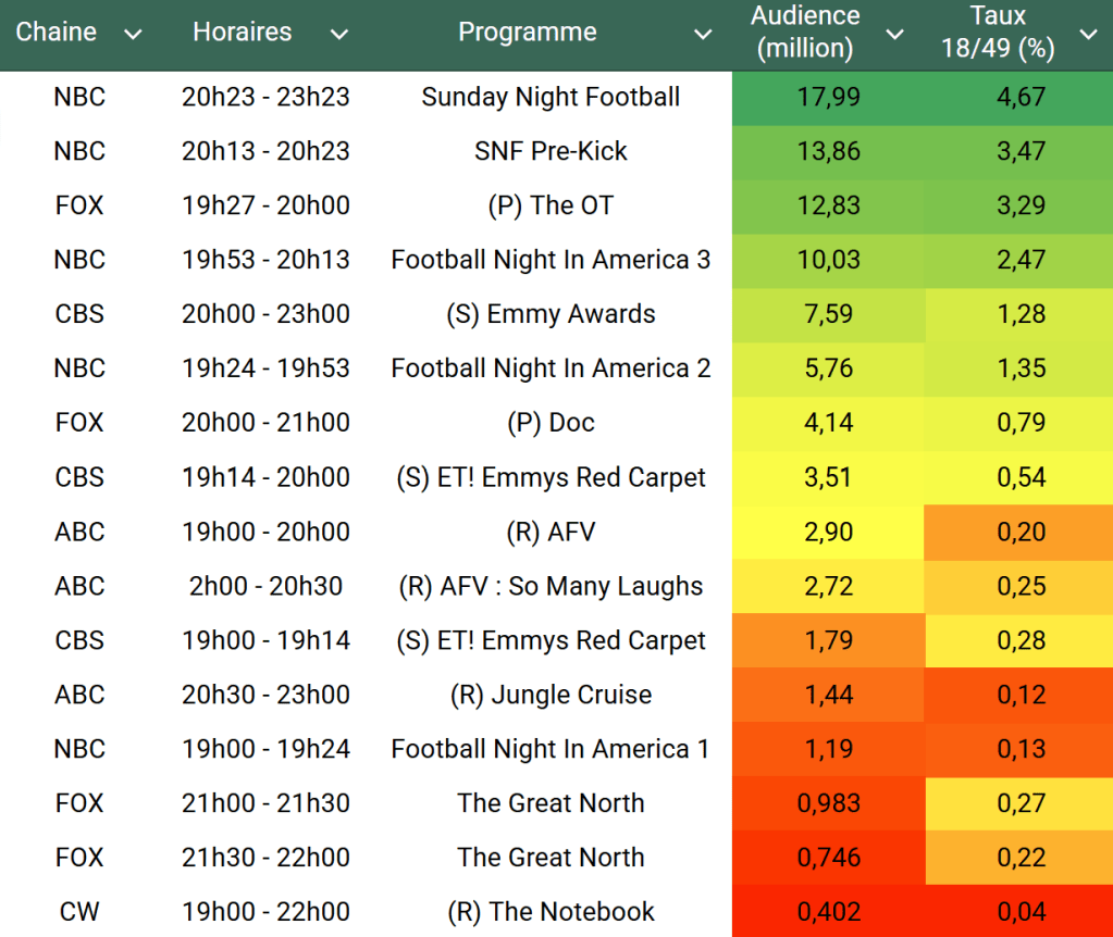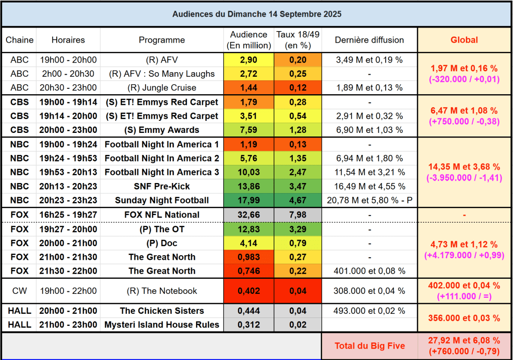 Emmy Awards : Record depuis 2021 (sur CBS aussi) sur les deux indicateurs, meilleure audience depuis le 11 mai 2025 pour CBS en prime.