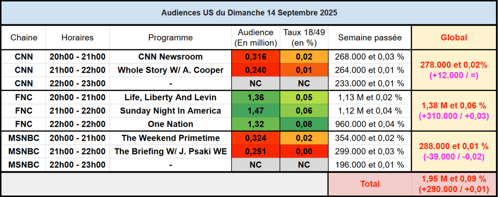 Audiences des chaines infos : FOX News en belle forme pour un dimanche.