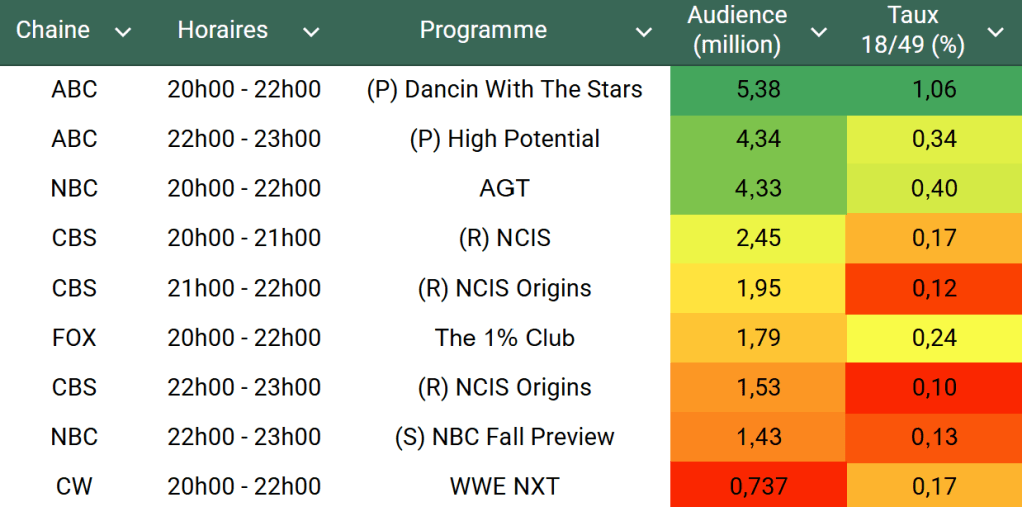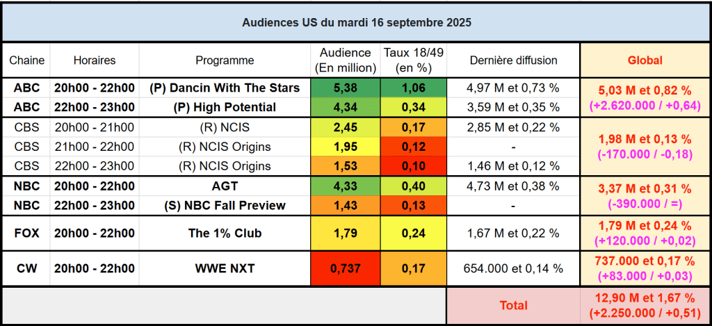 Voici les audiences de la soirée du 16 Septembre